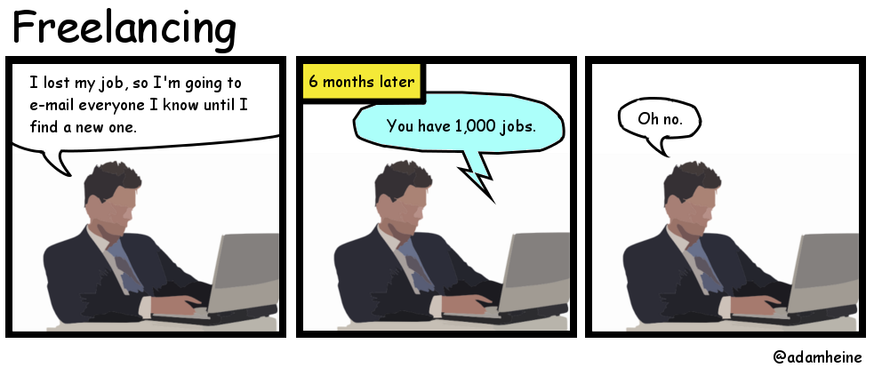 Remember: Anything can fall through at any time. If on-spec work falls through? More free time! If paid gigs fall through? Starvation! 12/— Adam Heine (@adamheine) November 8, 2017