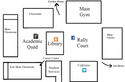 It's a little frightening to me how well my social media experience maps onto my high school ones. This is a picture of how. Your mileage, of course, may vary (particularly if you hung out in the gym -- for me, that was like one of the Circles of Hell).