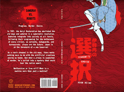 Izanami's Choice is my samurai, sci-fi novella set in a Meiji-era Japan that has adopted androids and other ridiculously advanced technology. Here's an excerpt: