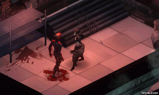 The inestimable K. Marie Criddle forced -- forced -- me to draw fan art for my own book.* So here you go, a non-canon** drawing of Shimada Itaru facing off against I dunno let's call it one of the police droids. Click to embiggen.