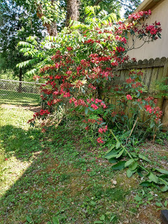 The only part I lament is my inability to handle my flowerbeds over the past couple of years. I can hire people to weed (after trying to find them for a long, long time), but they don’t weed like I would. They don’t do it right! I just discovered there’s a big pokeweed and several baby maple trees growing in my beautiful rhododendron right now. I broke off the pokeweed, but also need to cut off the trees. It would be best to dig them out, but I’m not up to that!