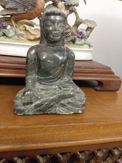 A jade Buddha my husband brought home from KoreaSo where did I use YOU CAN DO IT? At the end of each journal entry. I call them my Daily Pages, which I got from…somewhere. I do them M-F so I don’t feel like I have to write them every day. It’s my log book, part diary, part what I’ve accomplished in the last day (or weekend), and what I hope to get done that day. It’s the first thing I do in my work day, so the exhortation at the end of my writing serves to propel me into and through the day.