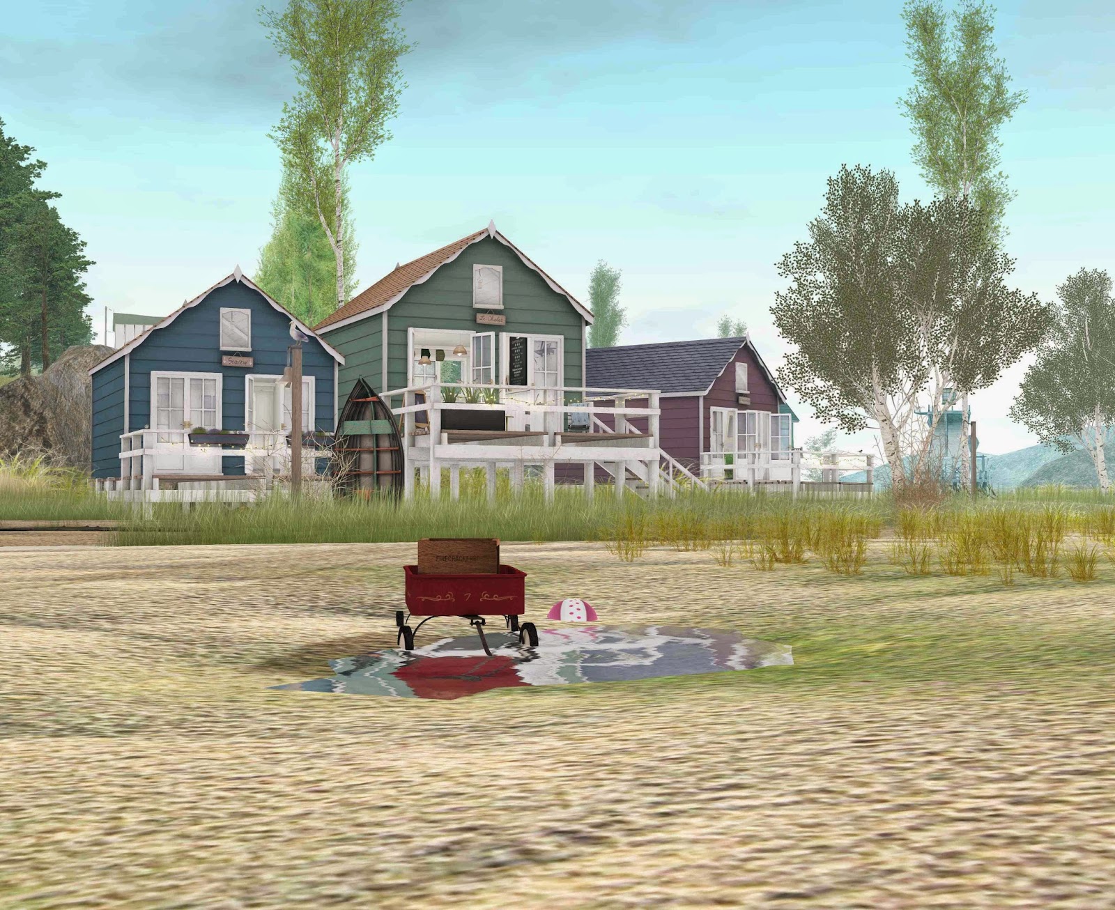 The sim is located next to Crash Boat, which is, in fact, where your teleport touches you down, just outside an old railway station created by Denise. Follow the road across the track (exercising due caution, obviously) and eventually you find yourself on a narrow wooden jetty which leads you across the sim border and onto the first of the islets. Take a moment to appreciate the couple of food stalls (by The Biscuit) on the sea front first, though. Actually, if you're on a diet, don't.