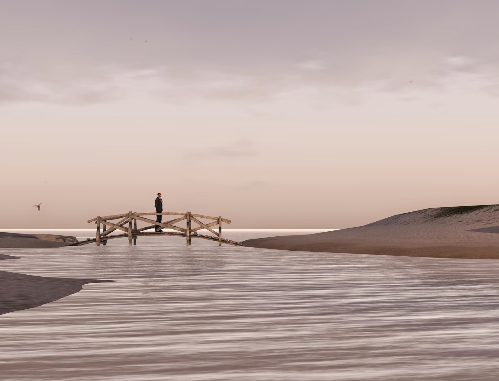 Dotted around the sim, a few other visitors make their own personal explorations, each making a physical connection to the landscape in their own personal way, such as standing still in quiet water.