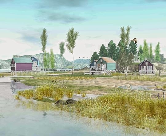 Here and there, The Trace is punctuated by wooden buildings. There are a few small homes, a potting shed, an open-air school with apples bobbing in a pale of water at the door. Toward the water's edge, the homes are raised on stilts. A path runs through floodland grasses to a lighthouse (press the big red button by the door - who can resist those - to sound the fog horn).