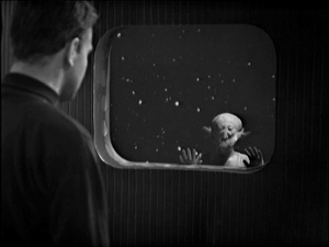- no, I don't remember ever thinking that. If I was capable at Age Two of not only understanding telly to be a fictional broadcast medium, but understanding the notion of "space-things" despite my grandad's attempts to claim otherwise, then when the Hell did I think that Little People lived inside the set? I never once attempted to the scrape soggy Weetabix into the workings, as the stereotype suggests that all children should. Perhaps it's a generational question. Depending on age, our parents, grandparents, or great-grandparents grew up with the radio. Believing in wee folk who inhabit the wireless seems somehow feasible, given the lack of supporting data one way or another. The generation sired in the late '50s and '60s - this would include Tat - grew up with a form of television in which clumsy cameras and a lack of video editing equipment resulted in long, locked-off shots, as if there might possibly be a stage-set behind the screen. But how can you believe in the Little People if the narrative switches between long-shot and close-up every few seconds? What, you think there are human beings in the TV, but that they instantly lop off the lower parts of their bodies and swell up to giant size whenever the audience needs a good look at the leading man's face...?