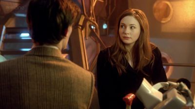 "Amy, you know what you said about a baby with a time-head? Er, sorry. It might be true. I wasn't sure if I should tell you, but it is your body, and... well, if we're going to retain any pretence that you're an independent human being or that I have an ethical code of some description, then you've got a right to know. I kept looking at pictures of your womb, and it was getting stalkery. Besides, if I kept quiet about it, it'd obviously just go tits-up in the end." "Oh. Right. Well, um... I've sort of seen you die." "Really?" "Yeah. That horrible woman with the gun fixation? She burned your body and everything." "Ah! Well, we should probably investigate both of those things, then. They're almost certainly connected. Phew! Thank goodness we compared notes, rather than being icily mysterious for no morally or logically defensible reason."(Update 28/05/11: Yeah... all right, that's a fairly logical reason. But it's still really quite unpleasant. You see? I told you I could never do this.)