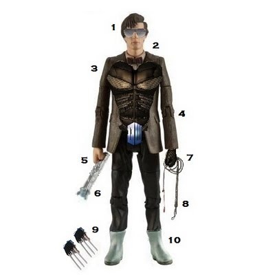 1. 4-D Visor. Internal head-up display automatically identifies any being, artefact, or exotic form of energy the Doctor may encounter, removing the need for tedious investigation or mystery. So as to "subvert" any head-up displays you might see in movies, this one is programmed to say something vaguely witty and English-sounding every one-in-six times the Doctor looks through it, like "a nice cup of tea" instead of "hyperdironic output at 84%". The other notable feature of the visor is that 'IT'S COOL!', as the Doctor will loudly exclaim when he puts it on for the first time.2. Who-erang. The bow-tie is edged with a unique Time Lord alloy of iron, silver (in case of werewolf attack), and timeywimeyum. Can be thrown to disarm villains, but not kill them, except when it becomes necessary to kill them every other week. In the season finale, it transpires that the timeywimeyum element allows the Doctor to throw the Who-erang through time: in the first half of a two-parter, he randomly hurls it into a corner and sees it vanish, but it appears in exactly the same place at the end of part two when the arch-villain's standing there with the doomsday trigger in his hand. Because the Doctor saw that coming, somehow. Or did he...? He denies it, so yes.3. Geography-Teacher-Chic Body Armour. All the protection of bulletproof neo-plastic and adolescent machismo, with a hint of eccentric Englishness that's apparently meant to justify its existence. Acts as a metaphor for the entire series. As an additional element of irony, jacket has elbow-patches made from the same indestructible material.4. UltraTARDIS Control. Finally, the TARDIS comes into its own as a truly chameleonic piece of hardware. By activating his belt-buckle mechanism, the Doctor can transform his mode of transport into a four-dimensional warship, able to hover over battlefields like an All-Destroying Harbinger of Doom (but still inlaid with blue panels, for branding reasons). He can then activate the TARDIS weapons arrays with mere will-power, via the telepathic circuits.5. Mark III HyperSize Sonic Screwdriver. Eight times as large as the previous version, and capable of firing a bazooka-width band of energy to rip apart the molecular bonds of opponents. (Note: definitely not a gun. Can only be used against targets whose molecular bonds are traditionally weak, like aliens or Nazis.)6. HyperSize screwdriver is also double-ended, allowing "it goes both ways" and "two at a time" innuendo when necessary.7. Evil Hand. Spoiler alert. At the end of the preceding season, the Doctor comes into contact with "anti-being", a perverted version of Time Lord biomass which infects our newly-resurrected hero with "the force of Absolute Dark". Throughout the new-look Doctor's first season, the contaminated hand becomes increasingly powerful, a story-arc which eventually results in what fans are already calling "The Darkest Doctor". (Darkest Doctor action-figure available Christmas.)8. Hypno-Whip. From the beginning, this production team's idea of visual storytelling has largely been based on the Indiana Jones movies. And now the Doctor can look even cooler than Harrison Ford, not only using the whip to bring down enemies who seem more or less human (and therefore can't be killed with the screwdriver), but also to engage them in a hypnotic mind-meld when it's convenient to the narrative. Like in "The Girl in the Fireplace", only probably less sexy.9. Adamantium Claws. (Optional.)10. Cyber-Boots. As part of the "darkening" of the Doctor (see point 7), the new-look Doctor will employ cyber-technology in the next season. Though he considers the Cybermen to be a moral horror beyond almost any other, he's still prepared to adapt their footwear into something that can literally "walk through dimensions", as long as there's angst or a long-term sinister consequence involved. Cyber-boots will also allow him to stamp on the throats of inferior beings, or anyone who tries to point out the difference between "drama" and "things happening very quickly".