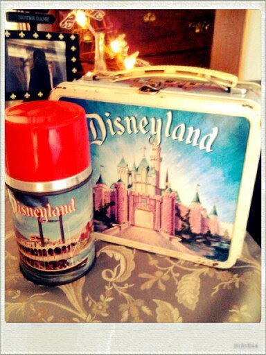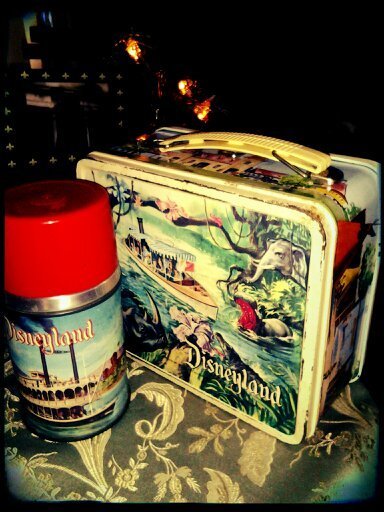 Just a wee summat for the Disneyana geeks: my latest vintage acquisition! 'Tis an authentic, 1957 Disneyland lunchbox complete with mint-condition, Mark Twain Steamboat Thermos, already put to fun and fab use as my Springtime purse! To keep things in perspective, this lunchbox was produced a mere two years after Disneyland's Opening Day on July 17, 1955.