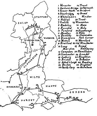 As the king later told Samuel Pepys, he and Phelipps were to meet Gounterand Wilmot "some 14 or 15 Myles off on my way towards Shoram, and were to lodgethat night at a place called Hammelton, 7 Myles from Portsmouth, because it wastoo long a Journey to goe in one day to Shoram."