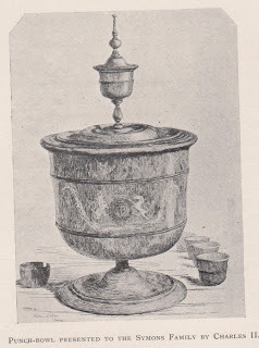 Symonds family after his Restoration"Supper being ended, it beeing tenn of the clock, theColonel began to bethinck himself that the King had ridd neere fourty milesthat day, and was to undergoe a very hard journey the next; and how to get theKing out of his company and to bed, he could hardly devise. Yet the Colonel whispered his kinsman in theeare, saying … "hee is a Round-head indeede, and if wee could gett him to bed,the house were our owne, and wee could bee merry.' Hee readily submitted, and the Colonelpresently (leaving the Lord Wilmot behind) conducted the King and Colonel Rob.Philips (whoe lay in the Kings chamber) to bed.