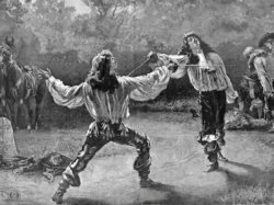 "After a whyle, the Colonel broke the business to him,saying, 'I doe not only come to visit you, but must request one favour of you.' He replyed, 'Anything in his power.' Then the Colonel asked him if he couldfraught a barke; 'for,' said he, 'I have twoe speciall friends of mine, thathave been engaged in a duell; and there is mischief done, and I am obliged to getthem off if I can.'