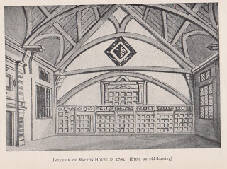 Interior of Racton House in 1789When he leftWilmot and went to his bedroom, he found that his wife was very suspicious. She was sure that Wilmot was not the Mr.Barlow he claimed to be, and that his presence surely meant danger. He tried to reassure her that all was welland she didn't need to worry, but she said "Shee was confident there was morein it then soe, and enough, shee doubted, to ruine him and all his family,' …breaking out into a very great passion of weeping."So, "theColonel … tooke a candle, pretending to goe into the next roome; but privately tomy Lord Wilmot." He told Wilmot howupset his wife was and asked permission to let her know what was going on. Wilmot agreed. Gounter explained the situation and "wiped theteares of his ladyes eyes, whoe, smiling, said 'Goe on, and prosper. Yet I feare you will hardly doe it.'"