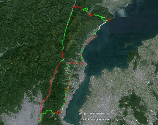 While we were there, I noticed this guy going the other way (up toward those steep curves)...