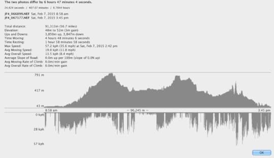 All in all it was 22.7km (14.1 miles) from the start. It took 1 hour 27 minutes of cycling plus another 9 minutes of rest