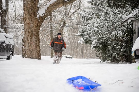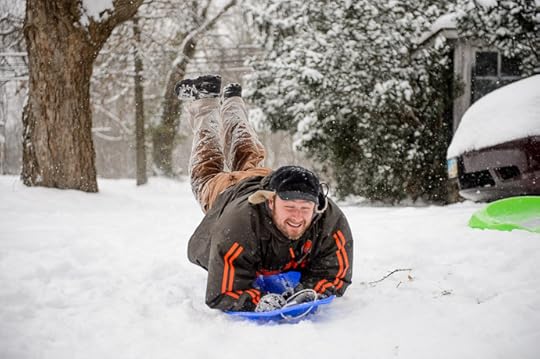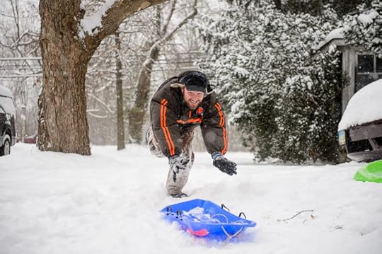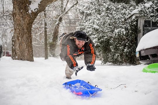 These pictures of Anthony (age 10 at the time) sledding in the back yard are from exactly one year ago today.