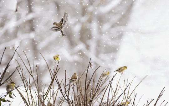 the snowfall to a copy of the goldfinch photo. It's a simple snowfall animation that repeats every 4/5th of a second. Simple but nice.