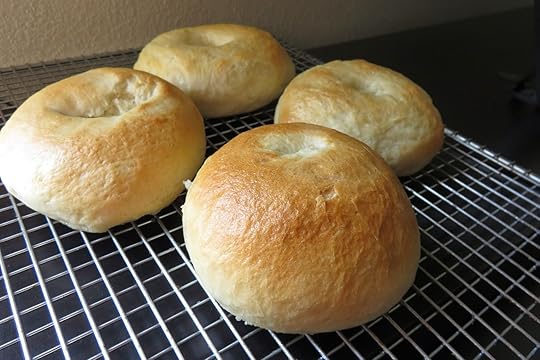 8. Transfer the drained bagels to a lightly oiled baking sheet. Bake* at 425 for 20 minutes, until golden. Cool on a wire rack.