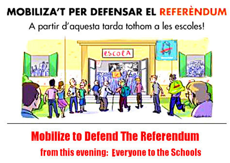 The ‘Open Schools’ (Escoles Obertes) platform has called for mass occupation of the 2315 polling stations from 17hrs today. Over 60,000 people have already signed up to take part. The Madrid state has ordered police forces to take over and cordon off the stations from tomorrow.. But the Catalan police who should act first are obeying the orders of their director Trapero which allow use of the colleges until 6.00 am Sunday and forbid use of physical force by his Catalan police.