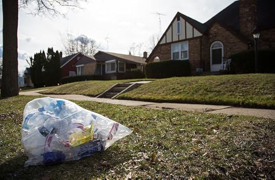 A trash bag filled with empty water bottles and water filters outside of a house on March 17, 2016, in Flint, Michigan. Flint continues to work through the effects of water contamination. Photo: Brett Carlsen/Getty Images