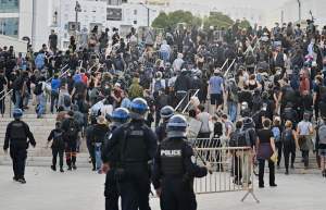 More than 1,000 people joined protests across France, with over 30 separate gatherings reported in cities including Marseille and Lyon, where protesters overturned trash bins and blocked major roads.