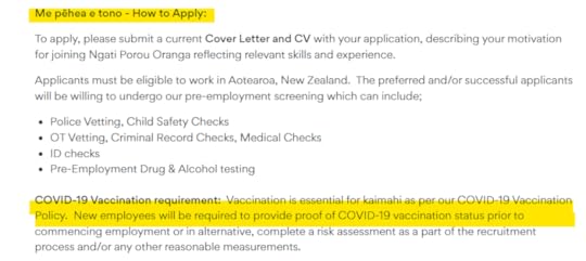 Why we can’t ‘move on’.To highlight the extent of the problem, I’m providing a ‘snapshot’ – eight job vacancies – advertised with covid ‘vaccination’ requirements (screenshots included):