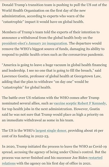 Trump Transition Team Seeks to Pull US Out of WHO “on Day One”