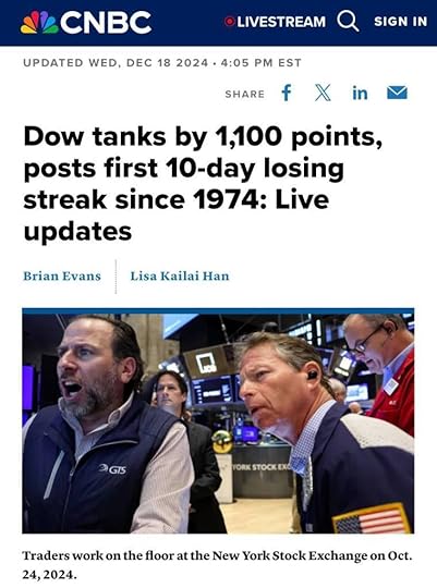 Dow Tumbles More Than 1,100 Points Marking Longest Losing Streak Since 1974
