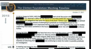 A newly declassified FBI internal timeline reveals that the bureau’s Los Angeles Field Office was investigating 19 Clinton Foundation bank accounts for potential campaign finance fraud in 2016 before the Justice Department ordered the probe closed.