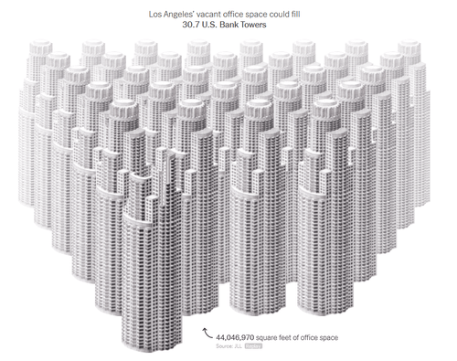 In Los Angeles, the vacant office space is equivalent to 30.7 US Bank Towers.