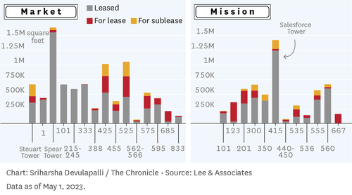 The Chronicle mapped and charted every major downtown office building’s vacancy, using data provided by real estate brokerage Lee & Associates.