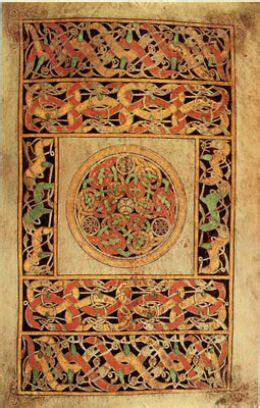 During the 5th century AD, Ireland experienced a late flowering of La Tene art.* The latter features stylized (as opposed to realistic) animals and abstract repeating patterns, especially interlacing curvilinear geometric shapes and spirals. If it originated after the Germanic invasion of Britain, this specific genre is returned to as Hiberno-Saxon or insular art.