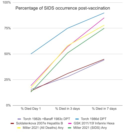 Toxicology ReportsVolume 8, 2021, Pages 1324-1335Highlights• Additive or synergistic toxicity may occur following multivalent vaccination.•Infant deaths post-vaccination are often misclassified as SIDS or suffocation in bed.•Of all reported SIDS cases post-vaccination, 75 % occurred within 7 days (p < 0.00001).•Inflammatory cytokines in the infant medulla act as neuromodulators causing prolonged apneas.•Adjuvants that cross the BBB may induce fatal disorganization of respiratory control.AbstractAlthough there is considerable evidence that a subset of infants has an increased risk of sudden death after receiving vaccines, health authorities eliminated “prophylactic vaccination” as an official cause of death, so medical examiners are compelled to misclassify and conceal vaccine-related fatalities under alternate cause-of-death classifications. In this paper, the Vaccine Adverse Event Reporting System (VAERS) database was analyzed to ascertain the onset interval of infant deaths post-vaccination. Of 2605 infant deaths reported to VAERS from 1990 through 2019, 58 % clustered within 3 days post-vaccination and 78.3 % occurred within 7 days post-vaccination, confirming that infant deaths tend to occur in temporal proximity to vaccine administration. The excess of deaths during these early post-vaccination periods was statistically significant (p < 0.00001). A review of the medical literature substantiates a link between vaccines and sudden unexplained infant deaths. Several theories regarding the pathogenic mechanism behind these fatal events have been proposed, including the role of inflammatory cytokines as neuromodulators in the infant medulla preceding an abnormal response to the accumulation of carbon dioxide; fatal disorganization of respiratory control induced by adjuvants that cross the blood-brain barrier; and biochemical or synergistic toxicity due to multiple vaccines administered concurrently. While the findings in this paper are not proof of an association between infant vaccines and infant deaths, they are highly suggestive of a causal relationship.
