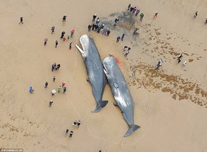 Thus a sonar blasting, site characterization in one place could easily lead to multiple whale deaths hundreds of miles away. If one of these blasters suddenly goes off near a group of whales they might go off in different directions, then slowly die.