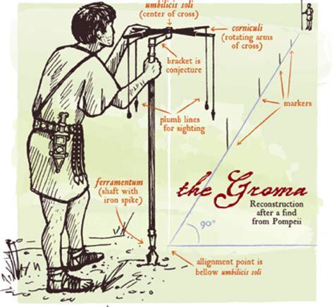 The Romans also developed land surveying technology to establish an accurate city grid. They used the rising sun and an instrument called a groma and a decampeda to measure distance. It was the role of army engineers to subdivide conquered land, employing a system still used in many regions of modern Italy.