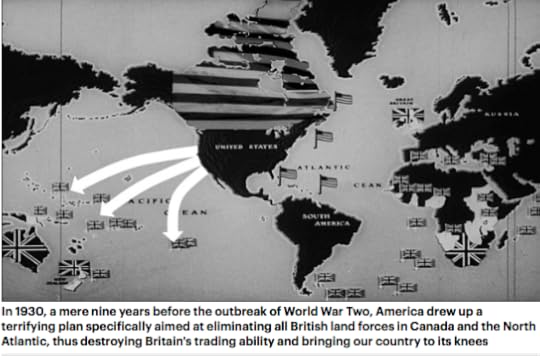 “Though ostensibly for war against Britain Plan RED is almost devoid of plans to fight the British. The Plan is focused on the conquest of Canada, which was color- coded CRIMSON. The U.S. Army’s mission, written in capital letters, was “ULTIMATELY, TO GAIN COMPLETE CONTROL OF CRIMSON.” The 1924 draft declared that U.S. “intentions are to hold in perpetuity all CRIMSON and RED territory gained… The Dominion government [of Canada] will be abolished.”