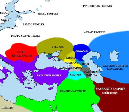 The Khazars formed major alliances with the eastern Gökturk Khanate and the Byzantines in attacking Sassanid Empire.* In 705 AD, the Khazars also helped Justinian II regain his throne after he was overthrown in a civil war.
