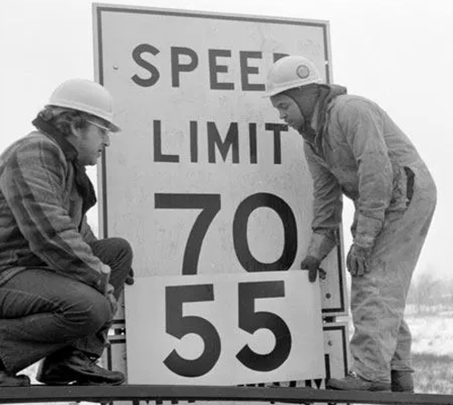 The energy price shock of the mid-1970s led to the reduction of maximum national speed limits from 70 mph to 55 mph. The 21% reduction in speed equated to gas consumption savings.