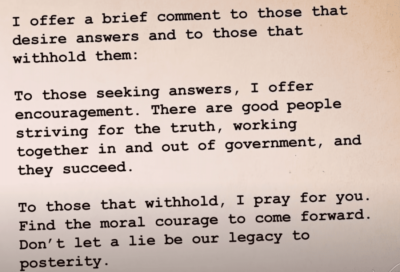 To me, the above statement doesn’t exactly sound like a denial. Something tells me that Major Murphy will be pushed one way or another to reveal more of what he knows. To either verify the legitimacy of his report or not.