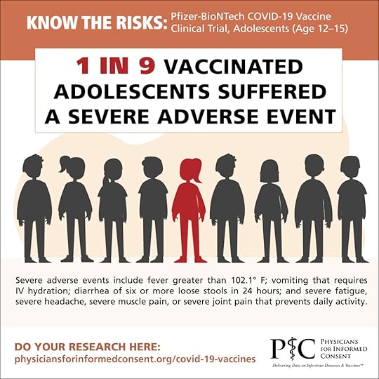 Furthermore, since only about 1,100 vaccinated children 12 to 15 years of age were observed in the clinical trial, there were not enough children included in the trial to be able to prove the vaccine is safer than the disease in children 12 to 15 years of age. The chance of a child 0 to 17 years of age contracting SARS-CoV-2 and dying from COVID-19 is 1 in 290,000.