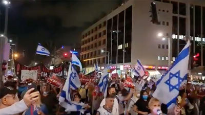 Protest in Tel Aviv, Israel against govt health pass. pic.twitter.com/CYb9uG0gij