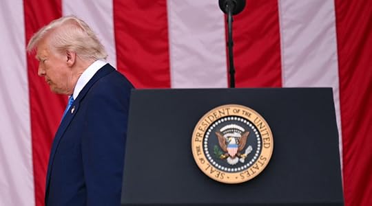 US President Donald Trump steps away from the podium in the amphitheater at the Tomb of the Unknown Soldier in Arlington National Cemetery in Arlington, Virginia, on Memorial Day, May 26, 2025. (Photo by AFP)