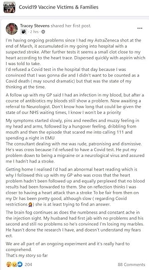 In post after post, over 29,500 members of “The COVID 19 Vaccine Victims & Families Group” detail the horrific health abnormalities they have suffered, including strokes, blood clots, excessive bleeding, needle-like pain in their limbs and paralysis, after receiving Moderna, Pfizer, Johnson & Johnson and AstraZeneca vaccines.