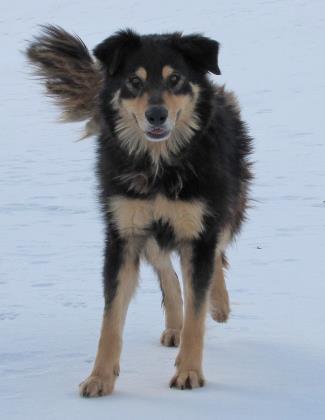 The house has been empty and quiet since Red left us last November. I keep forgetting he's gone, and saving treats for him and expecting him when I come in from outside. I've been watching the pet adoption sites for weeks. Finally, "Laddie" showed up. He's been featured in the county newspaper every day for at least a week, with no takers. Picked up as a stray, no ID, in Ohio. Rescued from a kill shelter there and brought to Helping Paws here. Today we went to meet him, and I'm sorry he had to wait since New Years because I would have chosen him much sooner had I known. Five years old is his estimated age, and the shelter people think he's a rough collie mix but I think border collie and husky. He's shaggy and cheerful, but not barky. Energetic and really friendly. It was love at first sight and I felt bad about having to leave him in the kennel there overnight but that's the standard policy. They checked our references (mainly our vet) and called after closing time to say we're approved and he can come home with us tomorrow. Here are his photos from the adoption page.