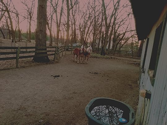 The sun was out most of the day, but a brisk breeze from the west made it feel ten degrees colder than the thermometer said it was. I did blanket both boys since they spend their days out in the open unless the weather is really inclement. When I brought them indoors they both seemed to hint that they wanted me to leave the blankets on, but I take them off because I'm afraid of them getting snagged on something in their stall and being stuck there for hours. (Or struggling to get loose and hurting themselves, worse yet.)