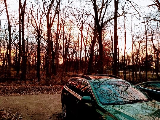 So I dutifully cleared the leaves off the windshield and checked the tires. The low pressure warning light came on last time I drove, and when I got home I checked and found that the pressure in all four tires was indeed 3 or 4 PSI lower than it should be. They weren't likely to all be leaking so I put it down to the sudden temperature drop we've had, from 60s and 70s wham, right into the 30s. Pumped them back up to within a pound or so of the recommended level, but I didn't want to go all the way up in case it suddenly were to warm up again. (It didn't.) Anyway, the warning light did not come on, and the tires don't look flabby, so I guess 31 is almost as good as 33 PSI. I'll push them up farther tomorrow.