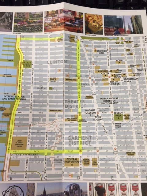 On a recent bookstore visit, I purchased a couple of maps for my current WIP, which is set in Hell’s Kitchen in New York City. I find I’m particularly fond of Knopf Mapguides with the fold out maps because you get a really good bird’s eye view of the city itself. Plus they have it sectioned off by areas so it makes it super handy when working in a small grid like I am. AND it’s small enough to fit into my purse so I carry it everywhere.