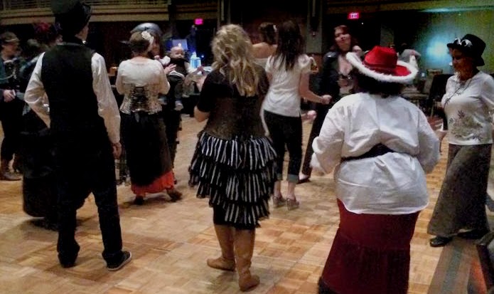 Fun was had by one and all. There was line dancing with the Steampunk crowd, bull riding with the western writers.