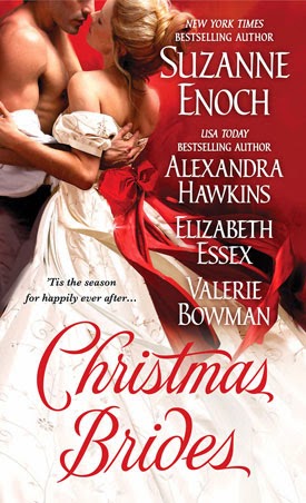 So to assuage my guilt over having to force the holidays upon you, and to get into the proper spirit of the season, I am giving away five (5) copies of CHRISTMAS BRIDES, the marvelous anthology of four Christmas stories from historical romance authors Suzanne Enoch, Alexandra Hawkins, Valerie Bowman and me!