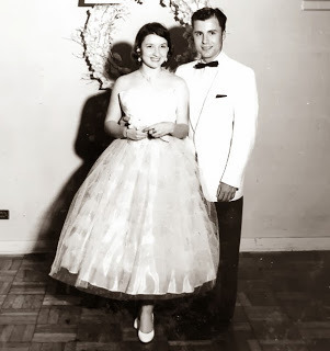 In the summer of 1952, when my mother was 15, she used to go to the dances where her uncle’s band played. When the band had a break, my dad came to sit at the table with his pal, Jimmy, and Jimmy introduced them. Mom says Daddy barely spoke to her. He was handsome, well-dressed, and older,(17) while she was a girl his mother considered “from the wrong side of the tracks”. Her parents were divorced, she moved from rented house to rented house every time her step-father lost a job, or her mother got bored.